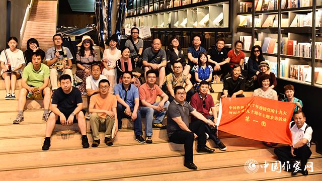 參訪團(tuán)在雅昌文化集團(tuán)的“世界最大藝術(shù)圖書墻”前合影留念
