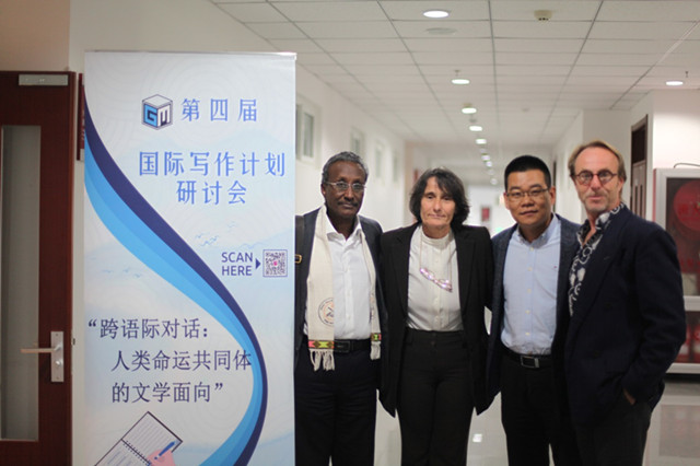 中外作家合影(左起:吉布提作家切赫?瓦塔,保加利亞作家茲德拉夫科?伊蒂莫娃,中國作家徐則臣,澳大利亞作家馬克?特里尼克)