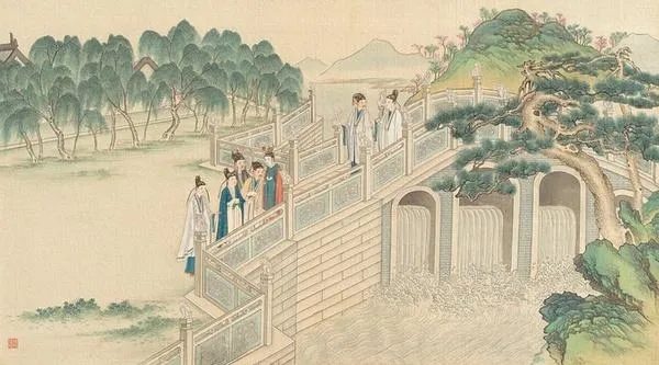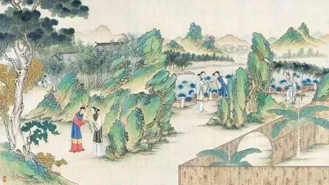 中國傳統(tǒng)園林更接近瑞安所說的英國園林的理念。孫筱祥認(rèn)為,中國園林是空間與時(shí)間的綜合藝術(shù),很多地方體現(xiàn)出中國山水畫運(yùn)動(dòng)視點(diǎn)的動(dòng)態(tài)構(gòu)圖:“園林中每一局部,當(dāng)游人視點(diǎn)固定時(shí),其所感受的空間,與繪畫的靜態(tài)構(gòu)圖相似;但是游人從進(jìn)園開始,隨著游覽路線從一個(gè)局部走向另一個(gè)局部,移步換景,有隱有顯,這種一景接一景連續(xù)出現(xiàn)的風(fēng)景布局,屬于動(dòng)態(tài)連續(xù)風(fēng)景構(gòu)圖。”[14]這種移步換景的動(dòng)態(tài)園林結(jié)構(gòu),在《紅樓夢(mèng)》中有各種體現(xiàn)。宋淇將其歸結(jié)為“透露法”:“《紅樓夢(mèng)》用的是逐漸透露法,猶如一幅長江萬里圖,一路緩緩展開,一路漸漸呈現(xiàn),不能一覽而盡?!盵15]