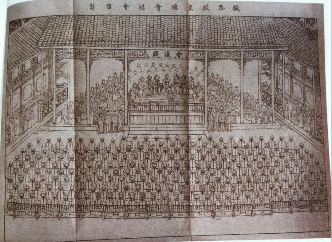 時人所繪川漢鐵路公司股東大會圖,誦清堂主人:《辛亥四川路事記略》,轉(zhuǎn)引自《四川省圖書館館藏四川保路運動史料書影匯編》,四川大學(xué)出版社,2014年。