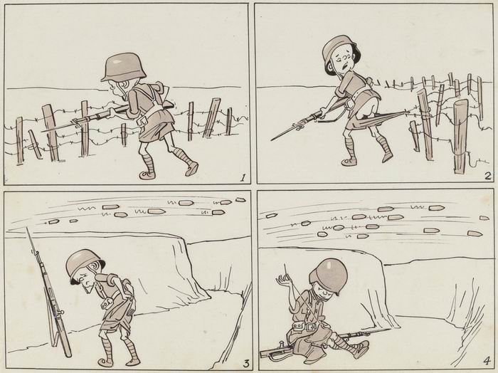 《三毛從軍記》從頭到尾圍繞了一個小兵,從一個小兵的角度看整個戰(zhàn)爭的情況,我父親在這部作品中也并沒有把三毛畫成十全十美的形象,他是一個小人物,他有一些缺點。這也是我父親自己非常喜歡的一部作品。