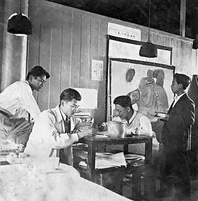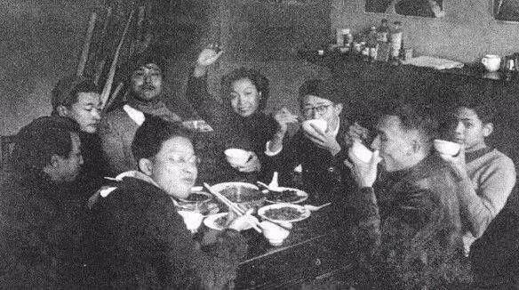 救亡漫畫宣傳隊在創(chuàng)作 右起:張仃、胡考、張樂平、陸志庠