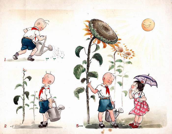 1949年初,宋慶齡創(chuàng)辦的中國福利基金會為救助流浪兒童,計劃與我父親一起舉辦一個關于三毛的義賣和展覽,并接受捐款成立“三毛樂園”專門幫助流浪兒童,讓他們有飯吃、有地方住、有書讀。1949年4月4日(當時的兒童節(jié)),在上海南京路大新公司(今市百一店)舉辦了一次展覽,我父親畫了30幅三毛的水彩畫進行義賣,當時30幅作品全部售完,最高的一幅是一位外國記者以800美元拍下,當時800美元是一筆很大的數(shù)目。展覽中上海商會的會長還主持舉行了募捐,所獲款項后來全部用于辦“三毛樂園”,這在當時也是一次有很大影響的慈善募捐的活動。