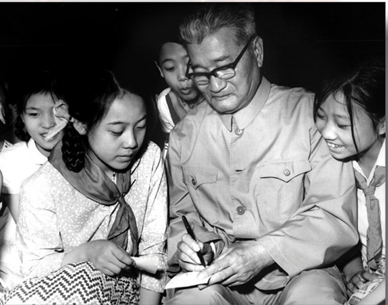 張樂平與孩子們在一起