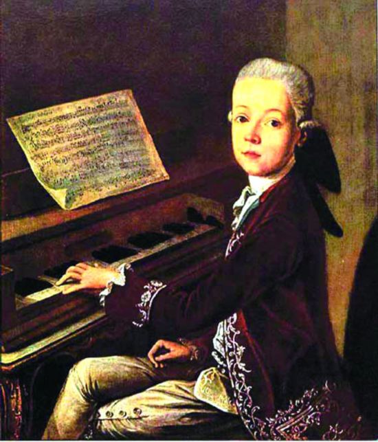 自1762年起,6歲的莫扎特還像個瓷娃娃時,其父列奧波德就領(lǐng)他和10歲的姐姐瑪麗亞·安娜周游歐洲,讓一對“金童玉女”在各國宮廷舉辦音樂會,演奏鋼琴,得到聽眾熱烈喝彩。七八歲上,小莫扎特譜出《第一鋼琴協(xié)奏曲》等十來首輕捷異常的作品,由人們開始當(dāng)眾彈奏。孩提時的莫扎特十分活潑頑皮,1762年,他和姐姐隨父乘船沿薩爾茨赫河和多瑙河而下到維也納開羽管鍵琴演奏會。他們受哈勃斯堡王朝皇帝和皇后的邀請,來到斯楚布魯恩皇宮,第二次是在皇子馬克西米里安的生日慶典上演出。弗朗索瓦一世戲稱莫扎特為“我的小魔術(shù)師”,可莫扎特竟然置若罔聞,要求皇上把宮廷樂師喬治·克里斯多夫叫過來,讓聲名顯赫的克氏在自己看譜彈琴時來為他翻頁。他說克氏“能夠做到”,言下之意是弗朗索瓦一世干不了這個營生。這之后,皇后和她的幾個孩子約小莫扎特前去參觀他們居住的套房,從薩爾茨堡來的頑童滑倒在打蠟地板上。比莫扎特大兩個月的瑪麗-安朵奈特忙將他扶起,可小東西沒有一聲道謝,反說要娶她為妻。眾所周知,瑪麗-安朵奈特后來成了法王路易十六的王后,法國大革命時被送上了斷頭臺。莫扎特的父親對人說,在維也納那一回,他的寵兒還跳上瑪麗的膝頭,猛親了她一口。非禮如此,令旁觀者驚詫,啼笑皆非。孩提時的莫扎特就是這般任性,有時在演奏中突然離開鋼琴,去逗小貓,或去騎木馬玩耍,讓其父尷尬萬分。