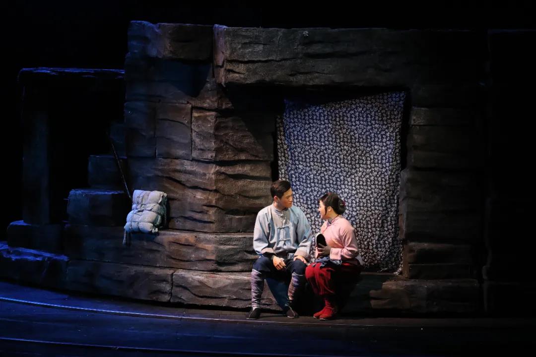 真正投入到人物中,從演員的內心體驗,到觀眾的情感共鳴,需要的是恰如其分的外部體現(xiàn),“那一段情節(jié)太揪心了,說臺詞的時候都是哭著,演員的歌唱和念白就得控制”。王麗達說,其實,越是在舞臺上體驗到強烈的情感,在表現(xiàn)的時候越是需要控制?!爱敽L哪玫秸煞虻哪请p血跡斑斑的鞋的時候,我就想,一個女人失去父親一般的舅舅、失去姐姐一般的夏荷、失去孩子,最后等來的是丈夫的鞋子,一拿到那雙鞋,她的腦海中就會浮現(xiàn)當時在炕頭給他縫鞋的場景,作為人物,她當時肯定說不出話了,但是作為演員,我要保持一定的理性,要控制好自己。那個時刻站在舞臺上,作為海棠,我?guī)缀醯瓜铝?,但作為演員,我不能真的倒下,是驚得一個踉蹌,這時候氣息已經浮到上面來了,因為失語、難過,這種氣息狀態(tài)是很難歌唱的。我怎么唱?每次演到這里,我坐在磨盤上,會迅速調整一下,讓氣息沉下來,但不能讓觀眾看出來,形體表演同時又在緊張地進行著,所以這個時候我需要一個特別強的氣息支撐?!蓖觖愡_說,“每一段都要以全部心力去把握。”