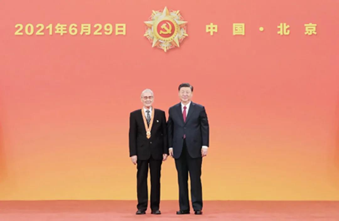6月29日,慶祝中國共產(chǎn)黨成立100周年“七一勛章”頒授儀式在北京人民大會堂金色大廳隆重舉行。中共中央總書記、國家主席、中央軍委主席習(xí)近平向“七一勛章”獲得者藍(lán)天野頒授勛章。新華社記者 李學(xué)仁 攝