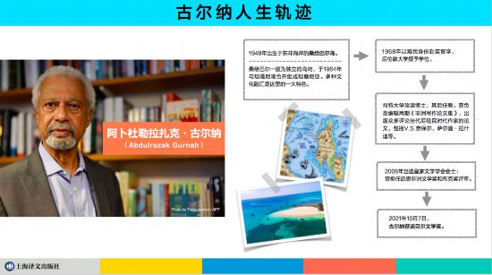1948年,古爾納出生在東非海岸附近的桑給巴爾島,1968年以學(xué)生的身份來到英國,并用英文寫作。他不僅是小說家,也是一位文學(xué)研究者,曾在肯特大學(xué)(University of Kent)擔(dān)任英語教授,退休后擔(dān)任文學(xué)雜志《瓦薩非瑞》(Wasafiri)的顧問委員會成員,現(xiàn)居坎特伯雷。2021年,“因?yàn)樗麑χ趁裰髁x文學(xué)的影響,以及對身處于不同文化夾縫中難民處境毫不妥協(xié)且富有同情心的洞察”,古爾納被授予諾貝爾文學(xué)獎并受到廣泛關(guān)注。