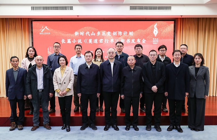 3月14日上午,歐陽(yáng)黔森長(zhǎng)篇小說(shuō)《莫道君行早》新書(shū)發(fā)布會(huì)在京舉辦。中國(guó)作家協(xié)會(huì)黨組成員、副主席、書(shū)記處書(shū)記吳義勤,貴州省委宣傳部常務(wù)副部長(zhǎng)謝念,作家出版社總編輯張亞麗,《中國(guó)作家》主編程紹武,中國(guó)作協(xié)創(chuàng)研部副主任李朝全,貴州省文聯(lián)主席、作家協(xié)會(huì)主席歐陽(yáng)黔森,貴州省作協(xié)黨組書(shū)記、副主席何長(zhǎng)鎖,以及貴州脫貧攻堅(jiān)村代表等參加活動(dòng)。發(fā)布會(huì)由作家出版社副總編輯王松主持。