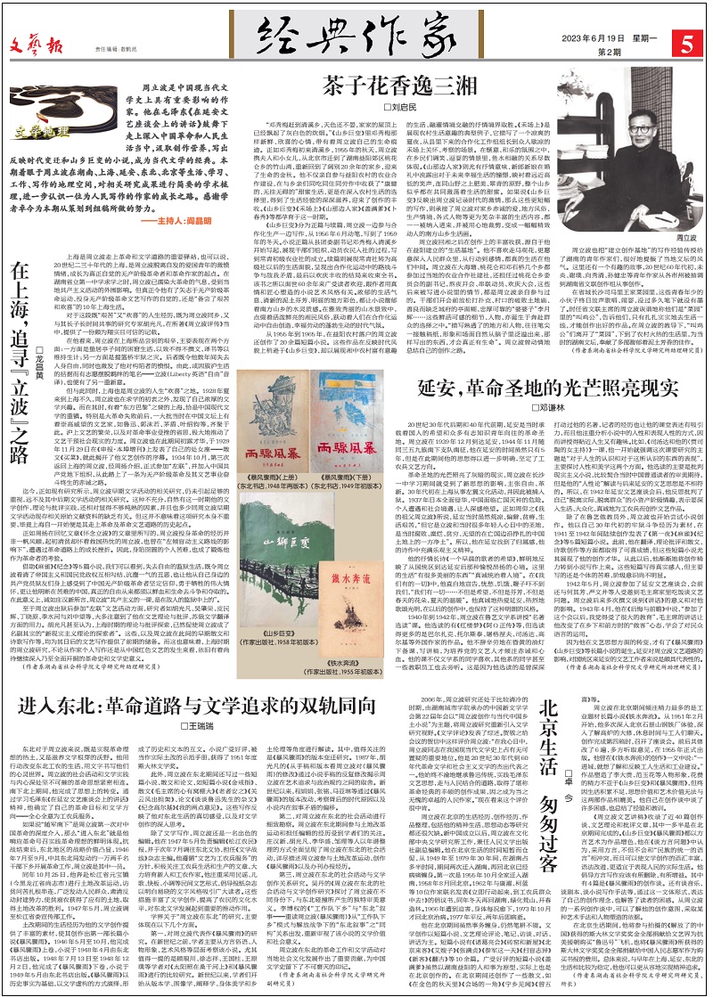 周立波是中國現(xiàn)當(dāng)代文學(xué)史上具有重要影響的作家。他在毛澤東《在延安文藝座談會上的講話》鼓舞下走上深入中國革命和人民生活當(dāng)中,汲取創(chuàng)作營養(yǎng),寫出反映時代變遷和山鄉(xiāng)巨變的小說,成為當(dāng)代文學(xué)的經(jīng)典。本期著眼于周立波在湖南、上海、延安、東北、北京等生活、學(xué)習(xí)、工作、寫作的地理空間,對相關(guān)研究成果進(jìn)行簡要的學(xué)術(shù)梳理,進(jìn)一步認(rèn)識一位為人民寫作的作家的成長之路。感謝學(xué)者卓今為本期從策劃到組稿所做的努力。