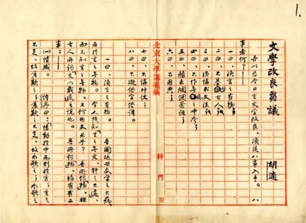 錢玄同抄錄的《文學(xué)改良芻議》