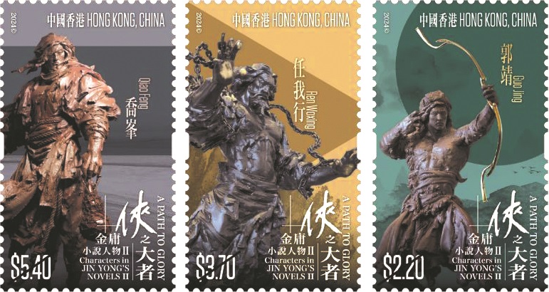 繼2018年發(fā)行“金庸小說人物”特別郵票后,香港郵政于2024年金庸百年誕辰之際,于3月14日以“金庸小說人物Ⅱ-俠之大者”為題發(fā)行一套特別郵票,以雕塑家任哲的雕塑為藍本,呈現(xiàn)金庸筆下部分重要小說人物的全新形象