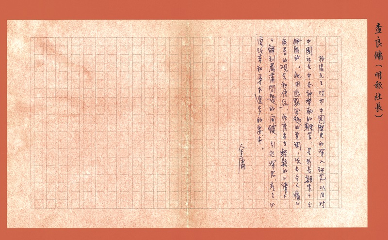 金庸評價柏楊手稿 中國現(xiàn)代文學館供圖