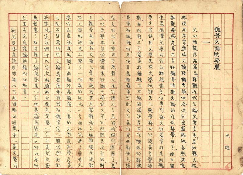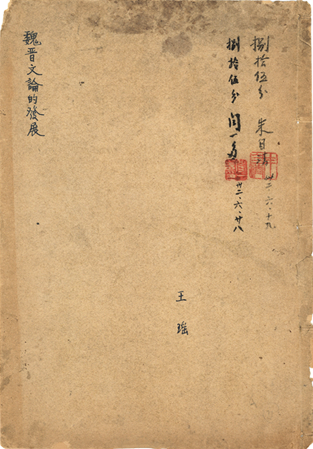 王瑤學(xué)位論文《魏晉文論的發(fā)展》封面,有朱自清、聞一多的打分