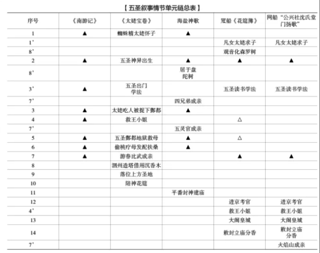 [20] 括號內(nèi)的數(shù)字為本文統(tǒng)一編號的情節(jié)單元序數(shù),將集中體現(xiàn)于“五圣敘事情節(jié)單元鏈總表”,下同不注。
