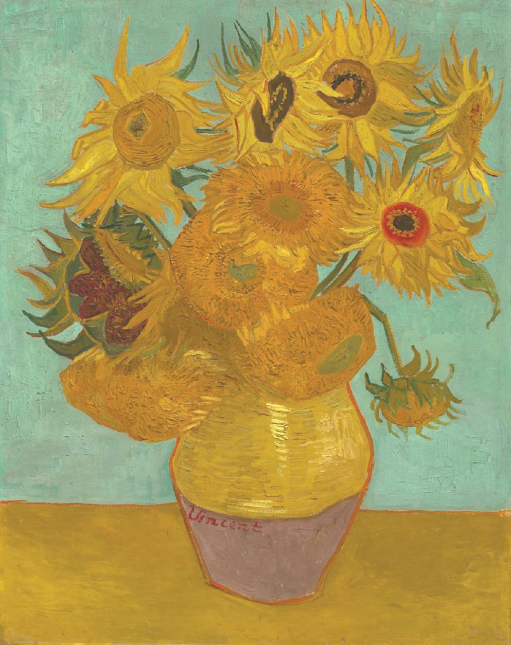 今天,梵高筆下如陽光般閃耀的向日葵已成為大眾記憶里最為熟悉的藝術(shù)圖像之一,但在它誕生的時刻,它代表著一種極為大膽的視覺革命。梵高試圖追求的是“一種或許不屬于印象派畫家的簡單技術(shù)”,從而將他從細碎的點畫風格中解放出來,真正形成自己獨特的藝術(shù)語言。荷蘭梵高美術(shù)館的策展人尼科·巴克與英國國家美術(shù)館的策展人克里斯托弗·里奧佩爾形容國家美術(shù)館所藏的《向日葵》“強化了視覺體驗的真實性”,這種強烈的、直接的真實感卻帶來了一種近乎幻覺的沖擊。它體現(xiàn)了梵高對巴黎先鋒派和其他非西方的藝術(shù)形式(如日本版畫)的汲取,同時又展現(xiàn)了他對各類筆觸的綜合運用和對物象的圖式化處理。