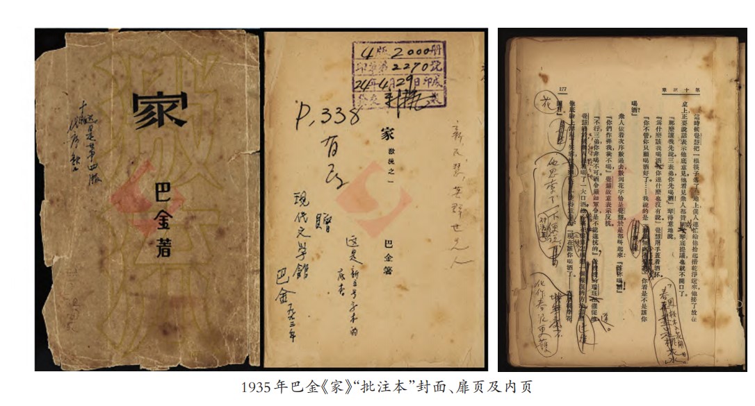 這些珍貴的手跡資料所涉及的內(nèi)容,不但在初版的《家》中看不到,在后續(xù)的版本中也沒(méi)有直接體現(xiàn),此版本是巴金以作者加讀者的雙重身份在閱讀《家》時(shí)留下的。書中的諸多手跡成為探索他創(chuàng)作思路最直接最珍貴的第一手資料,呈現(xiàn)了作者本人對(duì)作品的深入解讀,是研究巴金創(chuàng)作思想的重要史料。