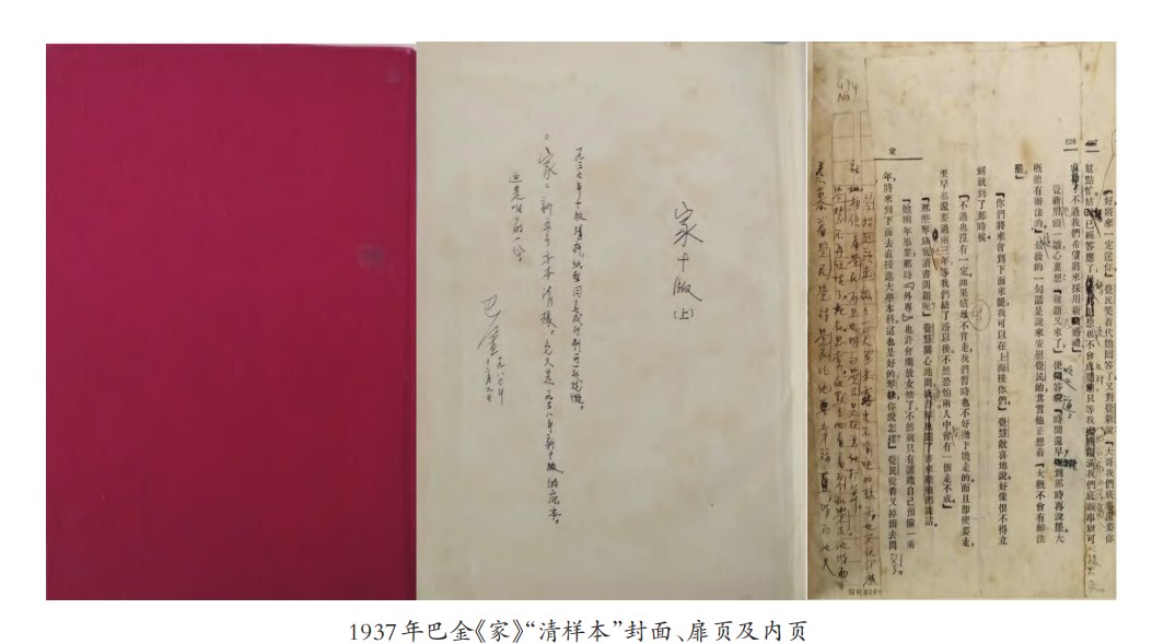 巴金是文學(xué)大家,在 1953 年面世的完整版《中國(guó)新文學(xué)史稿》中,魯迅的《吶喊》、茅盾的《子夜》、巴金的《家》都被認(rèn)為是中國(guó)新文學(xué)最為成功的一批作品,并漸漸形成了“魯郭茅巴老曹”的說(shuō)法。[10]新中國(guó)成立后,巴金是繼茅盾之后的第二任中國(guó)作家協(xié)會(huì)主席,還擔(dān)任了全國(guó)政協(xié)副主席等職務(wù),為我國(guó)文學(xué)事業(yè)發(fā)展傾注了大量心血,他晚年推動(dòng)建立的中國(guó)現(xiàn)代文學(xué)館也成為中國(guó)作家協(xié)會(huì)和文學(xué)界的寶庫(kù)和窗口。2024 年 5 月 18 日,中國(guó)現(xiàn)代文學(xué)館入選第五批國(guó)家一級(jí)博物館,巴金先生提議的“現(xiàn)代文學(xué)資料館”的設(shè)想開(kāi)花結(jié)果、茁壯成長(zhǎng)。一代代文學(xué)大家留給我們的不僅是卓越的藝術(shù)創(chuàng)造,還有寶貴的精神傳統(tǒng)。文學(xué)研究中作家研究是重點(diǎn),巴金研究是文學(xué)研究繞不過(guò)的一座高峰,新時(shí)代文學(xué)高質(zhì)量發(fā)展更應(yīng)從中汲取養(yǎng)分。今年是巴金先生誕辰 120 周年,讓我們回顧《家》的歷次修改,展現(xiàn)珍貴的文學(xué)檔案,以為紀(jì)念,以饗讀者。