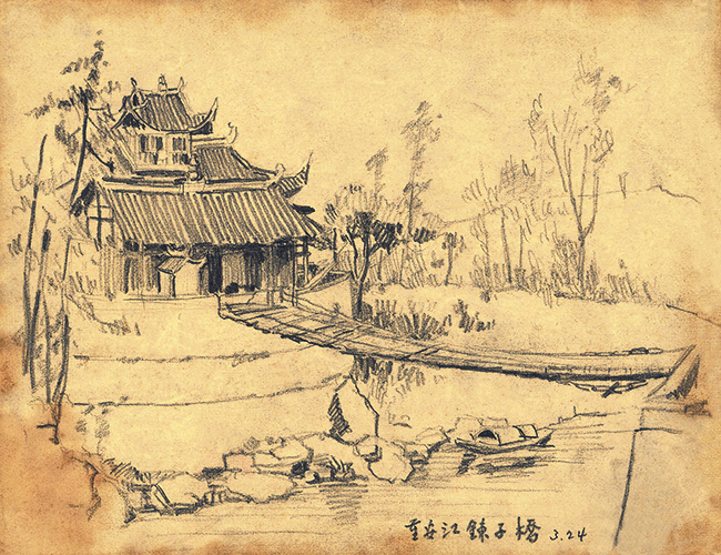 重安江鏈子橋(紙本鉛筆畫(huà),1938年3月24日) 聞一多 作