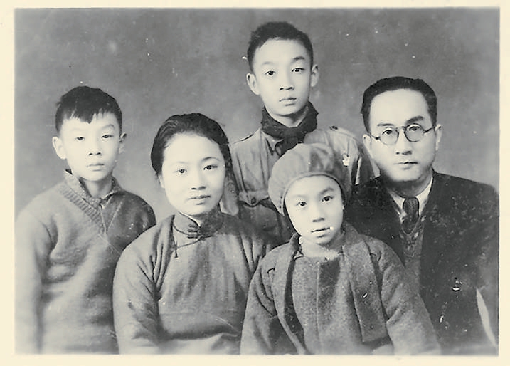 1940年鄒韜奮全家攝于重慶,右起:鄒韜奮、長子鄒嘉驊(鄒家華)、夫人沈粹縝、次子鄒嘉騮、前為幼女鄒嘉驪。