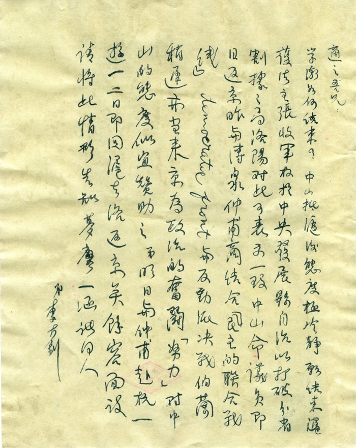李大釗致胡適關(guān)于孫中山抵滬后之態(tài)度函