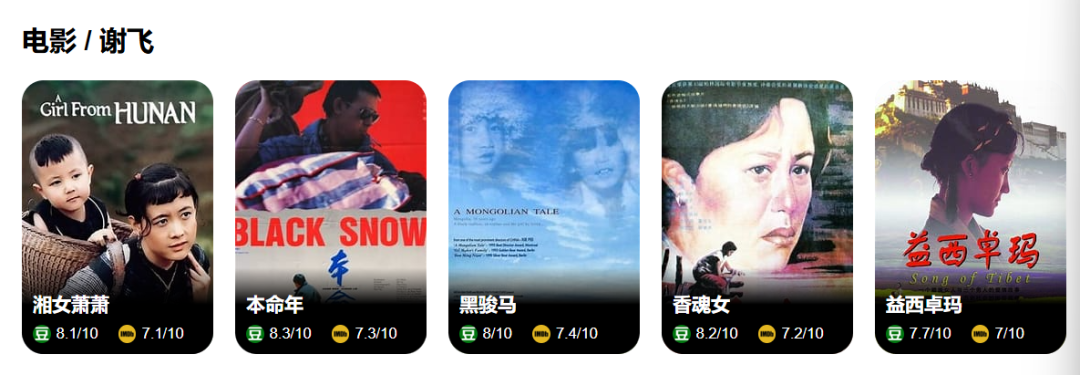部分謝飛電影及其評分