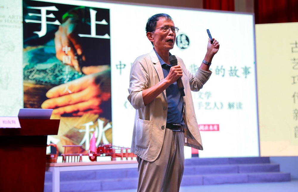 首發(fā)式結(jié)束后,“鑿刻時(shí)光”文化講座開(kāi)講,特邀深圳大學(xué)教授、作家南翔主講,以“手上春秋——中國(guó)手藝人的故事”為主題,引領(lǐng)現(xiàn)場(chǎng)觀眾走進(jìn)一段段深沉而溫暖的手藝時(shí)光,感受傳統(tǒng)手藝背后敬業(yè)、專注的工匠精神。