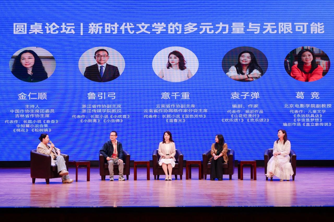 開幕式后舉行了圓桌論壇對話活動,金仁順主持論壇。上半場論壇以“新時代文學的多元力量與無限可能”為主題,魯引弓、意千重、袁子彈、葛競圍繞主題展開對談。大家談到,文學創(chuàng)作的可能性建立在深入生活、深入史料的基礎(chǔ)上,只有下大力氣去了解書寫對象的來龍去脈,才有可能將作品寫得真實動人。面對短劇的沖擊,今天的影視行業(yè)創(chuàng)作者應當堅守自身的特色與審美,兒童題材作品更需要進一步加強想象力和創(chuàng)造力,深挖中華優(yōu)秀傳統(tǒng)文化,找到傳統(tǒng)文化與現(xiàn)實生活相結(jié)合的有效路徑。