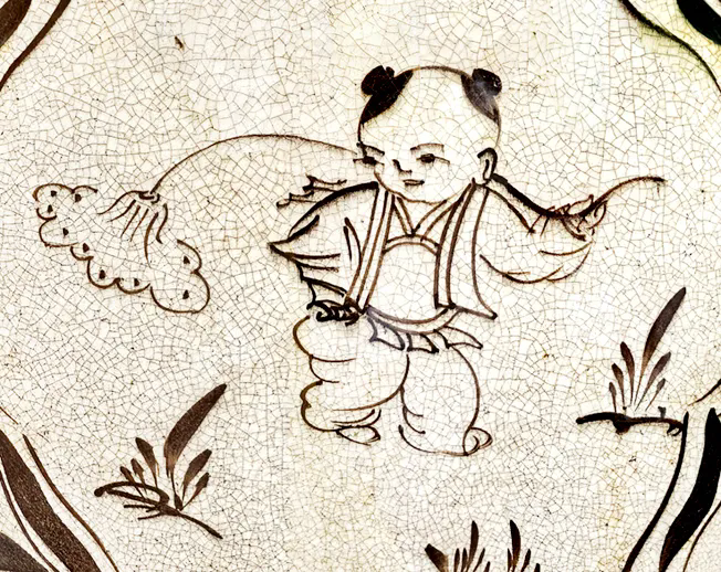 宋《白地黑彩繪持蓮?fù)蛹y梅瓶平面圖》局部