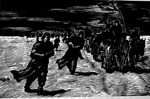 江豐《冰雪中的東北抗日義勇軍》(版畫,1937年)