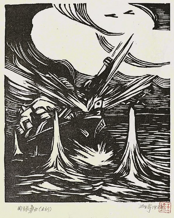 王琦《肉彈勇士》(黑白木刻,1939年)