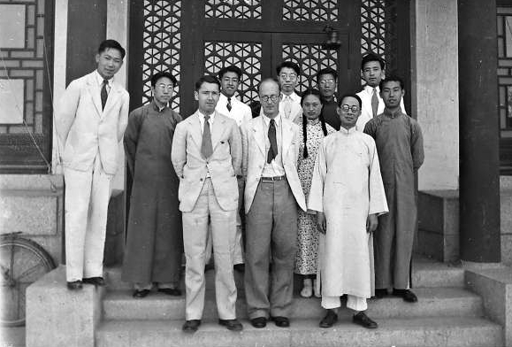 20世紀(jì)30年代,林邁可(前排左二)、李效黎與燕大師生的合影。