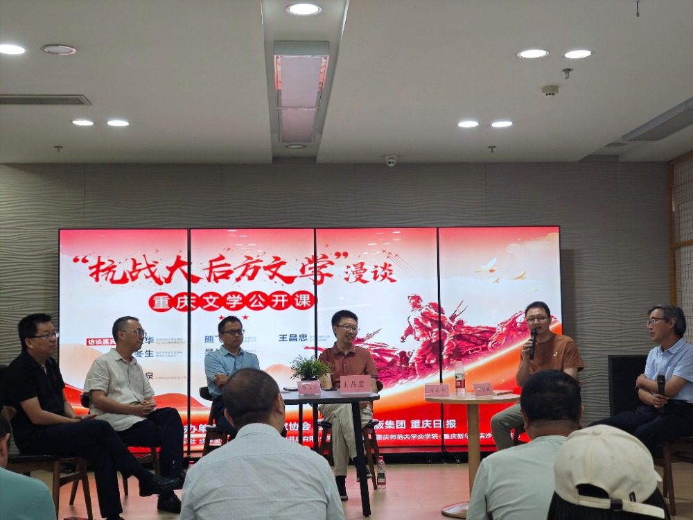 9月2日,由重慶市作家協(xié)會(huì)、重慶新華出版集團(tuán)、重慶日?qǐng)?bào)主辦的重慶文學(xué)公開課之《“抗戰(zhàn)大后方文學(xué)”漫談》在沙坪壩書城舉行。以“抗戰(zhàn)大后方文學(xué)”為主題,本場(chǎng)活動(dòng)的嘉賓們——凌孟華、熊飛宇、王昌忠、付冬生、吳佳駿等專家學(xué)者和文學(xué)編輯,結(jié)合自身創(chuàng)作研究及工作實(shí)踐,講述了抗戰(zhàn)時(shí)期曹禺、茅盾、冰心等作家及相關(guān)文學(xué)社團(tuán)在重慶進(jìn)行的抗戰(zhàn)書寫,深入解讀了作家在特殊歷史背景下的創(chuàng)作動(dòng)機(jī)、家國(guó)情懷和民族氣節(jié),致力于讓塵封的文學(xué)記憶被更多公眾所知,助推偉大抗戰(zhàn)精神在當(dāng)代更好傳承。