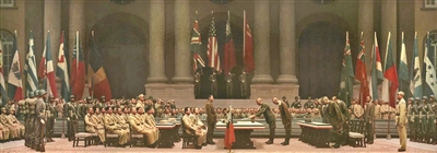 正在中國美術(shù)館舉辦的“人民必勝——紀(jì)念中國人民抗日戰(zhàn)爭暨世界反法西斯戰(zhàn)爭勝利80周年美術(shù)作品展”中,陳堅(jiān)的油畫作品《公元一千九百四十五年九月九日九時(shí)》,描繪了1945年9月9日9時(shí)在南京中國陸軍總部舉行的日軍投降儀式,再現(xiàn)了中國戰(zhàn)區(qū)受降的歷史場景。