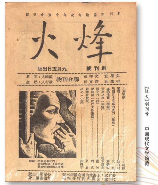 在這一年多的短暫時(shí)光里,《烽火》刊登了大量反映抗戰(zhàn)現(xiàn)實(shí)、鼓舞民眾士氣的優(yōu)秀作品。它的作者隊(duì)伍包含茅盾、巴金、靳以、蕭乾、黃源、唐弢、郭沫若、郁達(dá)夫、劉白羽、駱賓基、葉圣陶、豐子愷等近百位中國現(xiàn)代文學(xué)和藝術(shù)史上的重要人物。他們用文學(xué)藝術(shù)記錄戰(zhàn)爭的苦難、揭露敵人的罪行,也歌頌了軍民抗戰(zhàn)的英勇無畏,為中國人民構(gòu)筑起了一道無形的精神堡壘。在近百年前那個(gè)戰(zhàn)火紛飛的年代,《烽火》不僅成為中國文壇在抗戰(zhàn)初期的重要旗幟,以文學(xué)和藝術(shù)為媒介,深刻反映了特殊時(shí)代民眾的苦難、掙扎與不屈,更為全民族抗戰(zhàn)注入了強(qiáng)勁的文化動(dòng)力,留下了深遠(yuǎn)的精神遺產(chǎn)。