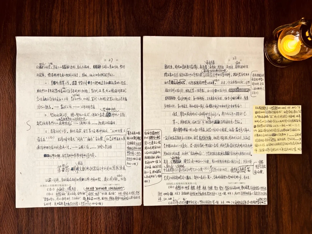 在動筆寫講義之前,我翻過好多中國思想史著作,從大部頭的侯外廬,到薄薄的常乃惪,從只講古代的楊榮國,到專講當代的郭湛波,從德國的佛克(Alfred Forke),到日本的武內(nèi)義雄,當然,也包括各種不叫思想史而叫哲學史的書,從胡適、馮友蘭到任繼愈??晌覍@些著作都不太滿意,覺得不能拿這些書當現(xiàn)成教材,只好自己從頭寫,往往是一邊寫一邊講,有時甚至前一天才寫好講稿,第二天就拿到課堂給學生講。那時候還年輕,又正值小平南方談話,各種新知也漸漸冒頭,所以寫的時候和講的時候,不斷會有新想法涌現(xiàn)。寫好就講,講完再改,講稿上貼滿各色貼紙,無論在形式上、資料上以及觀念上,離當時各種中國思想史或哲學史就越來越遠。