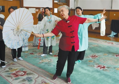 “劉長瑜花旦表演藝術(shù)人才培訓(xùn)”項(xiàng)目課堂上,劉長瑜為學(xué)員示范教學(xué)。