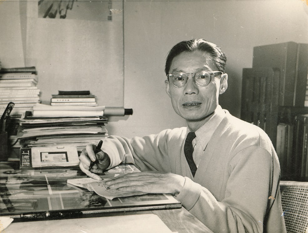 夏衍在創(chuàng)作(桌上放著《上海屋檐下》的單行本)