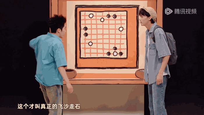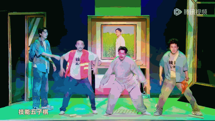 這有點(diǎn)像先鋒派藝術(shù)常用的“拼接”。不難發(fā)現(xiàn),技能五子棋學(xué)校在言說之時,非常喜歡將自己的話語直接聯(lián)系到小品之外、現(xiàn)實(shí)世界的某個元素中。譬如,在解釋何為飛沙走石時,張興朝大吼一聲“問得好”,隨后說道:“所謂飛沙走石,就是將對方的棋子,直接扔進(jìn)……什剎海!”在此,“什剎海”呈現(xiàn)為現(xiàn)實(shí)世界的一個碎片,其并沒有任何出現(xiàn)的理由,僅僅是被并置在飛沙走石技能一側(cè)。與之相關(guān)的還有,張興朝假扮保潔,用掃帚擺了一下張呈的褲子,后者抱怨“別弄,我這是新褲子”,前者立刻接話:“你你你,你要跳舞嗎?”張呈使出“力拔山兮”后,對方立刻發(fā)動一招“兩級反轉(zhuǎn)”,結(jié)果搬出的是張呈抖音賬號中的一張經(jīng)典(黑歷史)照片。被王廣擊敗后,張興朝躺在地上裝死,還不忘加上一句“APT, APT”。甚至有一些笑點(diǎn),雖然沒有直接對現(xiàn)實(shí)進(jìn)行照相術(shù)般的復(fù)刻,但其中也能夠看出現(xiàn)實(shí)碎片。比如,張興朝對張呈怒吼“如果你下棋就是為了贏的話,那你和那些下棋的有什么區(qū)別!”又或者“你這個畜生”。這些話語確實(shí)并沒有直接調(diào)用現(xiàn)實(shí)素材,但它調(diào)用了現(xiàn)實(shí)中的某種邏輯,并將其從其原生語境中暴力撕扯下來,使其成為一個個孤立的、懸置的片段。這些現(xiàn)實(shí)碎片被無中介地和言語的行進(jìn)主題并置,才是更為主流的笑點(diǎn)。