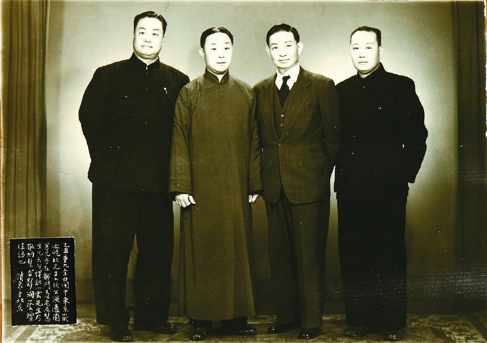 1949年9月初,梅蘭芳因參加新中國(guó)第一屆政治協(xié)商會(huì)議與開國(guó)大典,再度回京。據(jù)許文記載,10月,自西安赴京邀約程劇團(tuán)的趙清泉,與許商議,想請(qǐng)四大名旦合影一次留作紀(jì)念。當(dāng)時(shí)程劇團(tuán)正在天津演出,等程硯秋返京,梅劇團(tuán)又要赴天津演出,很難碰頭。正巧舊劇科的王頡竹拿著北京市政府救災(zāi)委員會(huì)的信向梅蘭芳接洽,想組織一場(chǎng)四大名旦同臺(tái)的義演。梅蘭芳于是推遲原計(jì)劃10月28日開始在天津的營(yíng)業(yè)戲,義演定于10月29日。許姬傳在《梅邊瑣記》里專有一篇《梅尚程荀會(huì)串》,詳記了此場(chǎng)演出。劇目有張?jiān)葡?、尚長(zhǎng)春《白水灘》,馬富祿、小翠花《打刀》,尚小云、荀慧生《樊江關(guān)》,大軸是《回荊州》,程硯秋、梅蘭芳分飾前后孫尚香,譚富英飾劉備,奚嘯伯飾喬玄,楊寶森飾魯肅,裘盛戎飾孫權(quán),侯喜瑞飾張飛,李多奎飾吳國(guó)太,蕭長(zhǎng)華飾喬福,于世文(許文記為楊盛春)、孫毓堃分飾前后趙云。這個(gè)陣容蔚為大觀,幾乎集合了當(dāng)時(shí)北京京劇界所有一流演員,四大名旦同臺(tái)更是多年未見。