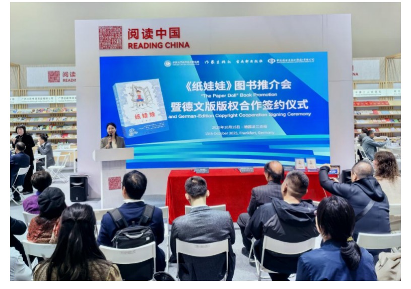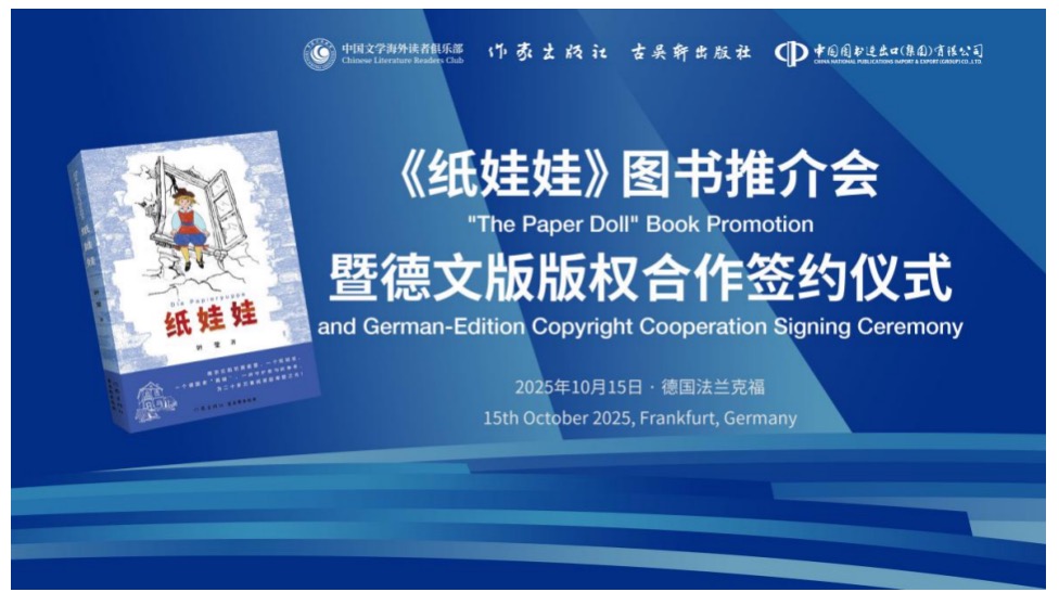 近日,由中國(guó)作家協(xié)會(huì)外聯(lián)部指導(dǎo),德國(guó)中國(guó)文學(xué)讀者俱樂部、作家出版社、古吳軒出版社、中國(guó)圖書進(jìn)出口(集團(tuán))有限公司聯(lián)合主辦的《紙娃娃》圖書推介會(huì)暨德文版版權(quán)合作簽約儀式在德國(guó)法蘭克福書展期間舉行。本次活動(dòng)以“跨越時(shí)空的和平敘事”為主題,匯聚中德出版界、作家、翻譯家及媒體代表,以兒童的視角,講述了世界反法西斯戰(zhàn)爭(zhēng)中的大愛故事。活動(dòng)由旅德詩人、作家昔月主持,作家葉瑩以視頻方式參加活動(dòng)。