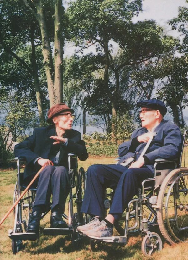 您書里寫到您祖父和巴金的交往,文章的結(jié)尾是關(guān)于您祖父和巴金最后一張合影的——兩位老人坐在輪椅上,戴著遮陽帽,您說“我祖父用他與生俱來的幽默對這張照片做了點評:‘兩個叫花子’”。僅從這一句點評就能感受到夏衍是個非常有趣的人,所以想請您再舉例講講您祖父的幽默感。