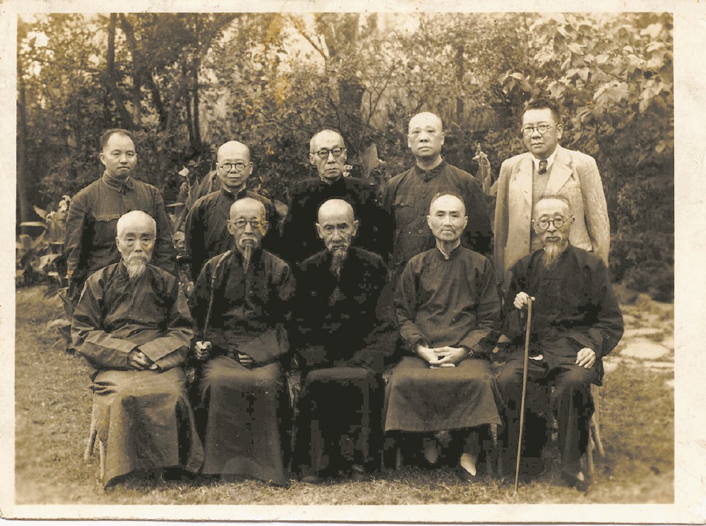 1953年10月16日,上海中山公園重九雅集合影。前排左一曹俶補(bǔ),左二左三劉嘯篁或黃燕甫,左四鍾泰,左五劉約真;后排左起王亞文、程宅安、呂思勉、何靜涵、葛一之。