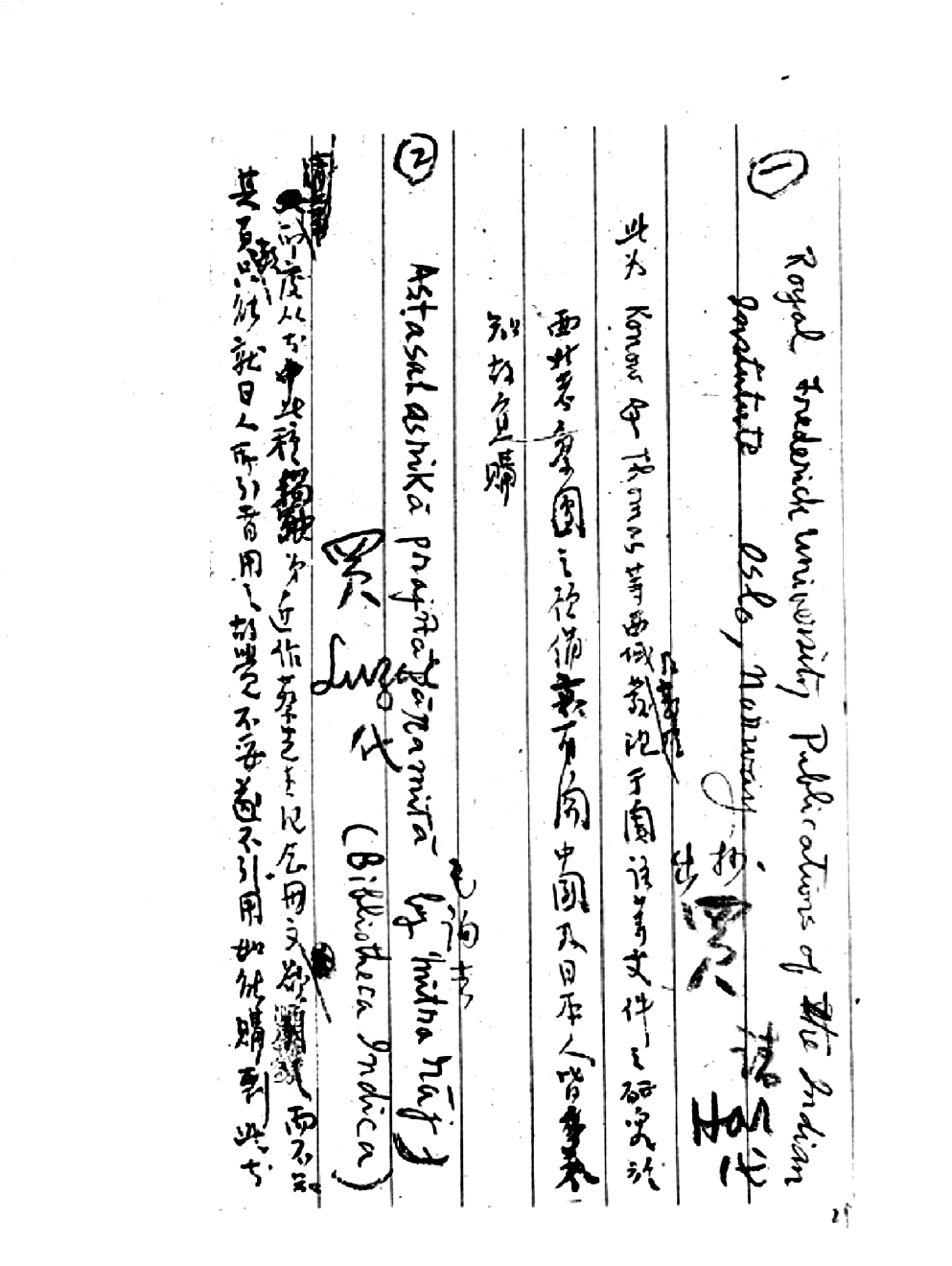 Royal Frederick University Publications of the Indian Institute,Oslo,Norway.此為Konow及Thomas等西域及敦煌發(fā)現(xiàn)于闐語(yǔ)等文件之研究,于西北考察團(tuán)之預(yù)備亦有關(guān)。中國(guó)及日本人皆多不知,故宜購(gòu)。(劉經(jīng)富《陳寅恪未刊信札整理箋釋》,《文史》第99輯,2012)