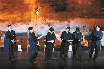 《農(nóng)莊館客人》是一部以二戰(zhàn)末期為時(shí)代背景,探討科學(xué)倫理與人道主義危機(jī)的嚴(yán)肅作品,在本屆戲劇節(jié)進(jìn)行劇本圍讀時(shí)引發(fā)關(guān)注。觀眾在飛機(jī)轟鳴聲、現(xiàn)場演奏營造的氛圍中,跟隨演員亦莊亦諧的表演進(jìn)入劇情,帶有思辨意味的扎實(shí)文本釋放出強(qiáng)大的能量。