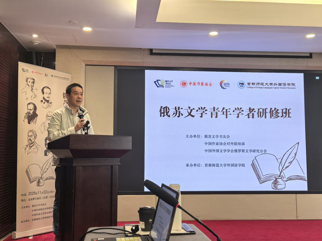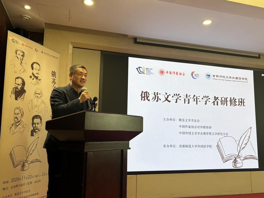 為賡續(xù)中俄文學(xué)交流傳統(tǒng),深化兩國人文合作,2025年11月22日至23日,“俄蘇文學(xué)青年學(xué)者研修班”在京成功舉行。作為“俄蘇文學(xué)書友會”的重要活動之一,本次研修班由中國作家協(xié)會對外聯(lián)絡(luò)部、中國外國文學(xué)學(xué)會俄羅斯文學(xué)研究分會主辦,首都師范大學(xué)外國語學(xué)院承辦,旨在凝聚青年人才、提升研究水平,積極構(gòu)建俄蘇文學(xué)研究的“中國學(xué)派”?!岸硖K文學(xué)書友會”是在中宣部文藝局的指導(dǎo)下,由中國作協(xié)外聯(lián)部聯(lián)合有關(guān)部門發(fā)起的常態(tài)化、專業(yè)化、公眾化的中俄人文交流平臺。