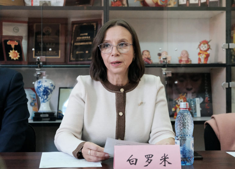 布加勒斯特大學(xué)孔子學(xué)院羅方院長(zhǎng)白羅米致辭。布加勒斯特大學(xué)孔子學(xué)院供圖