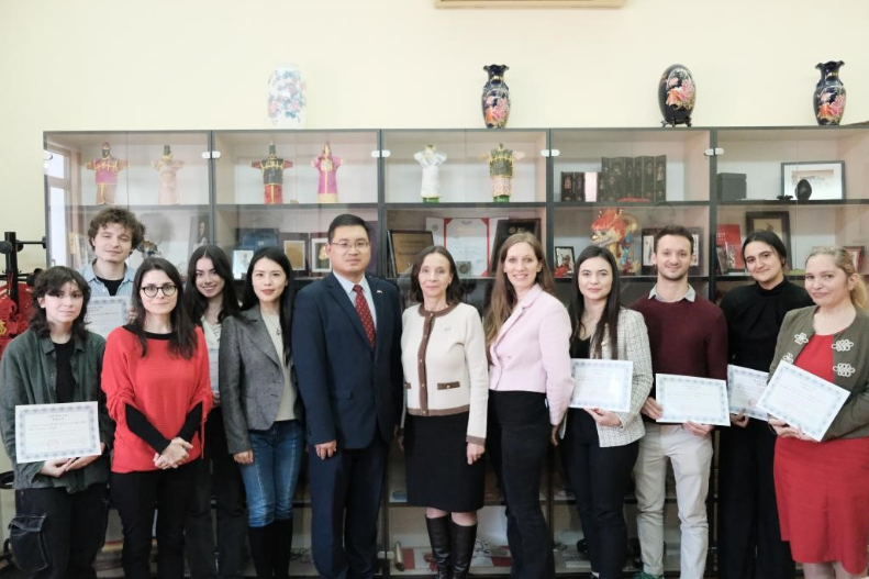 當(dāng)?shù)貢r(shí)間11月24日下午,首屆中羅文學(xué)作品翻譯大賽頒獎(jiǎng)儀式在布加勒斯特成功舉辦。該比賽由布加勒斯特大學(xué)孔子學(xué)院主辦、中國(guó)駐羅馬尼亞大使館支持。中國(guó)駐羅馬尼亞使館教育事務(wù)專員周國(guó)寧,布加勒斯特大學(xué)孔子學(xué)院羅方院長(zhǎng)白羅米、中方院長(zhǎng)蘇宇以及布加勒斯特大學(xué)外國(guó)語(yǔ)言和文學(xué)學(xué)院教師包心茹、安德出席。獲獎(jiǎng)選手代表、孔院師生和布大中文系學(xué)生40余人參加活動(dòng)。蘇宇主持頒獎(jiǎng)儀式。