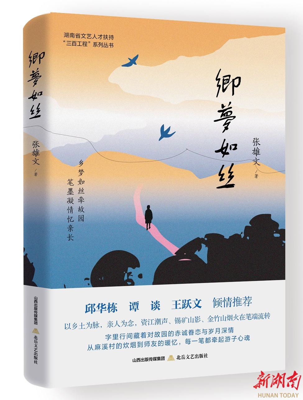 近日,張雄文新書《鄉(xiāng)夢(mèng)如絲》由北岳文藝出版社正式出版發(fā)行。該書為作者最新散文集,系湖南省文藝人才扶持“三百工程”入選作品。全書凝眸老去的時(shí)光深處,以鄉(xiāng)土與親人為主線,或回望故園,或感懷雙親,或憶念師友。字里行間藏著對(duì)故園的赤誠眷戀與歲月深情。作者文風(fēng)或如山間小道素樸清新,或如萬頃汪洋浩瀚恣肆,筆力遒勁而老到,思慮沉郁而睿智。中國作協(xié)黨組成員、書記處書記、副主席邱華棟、中國作協(xié)原副主席譚談、中國作協(xié)主席團(tuán)委員、湖南省作協(xié)原主席王躍文傾情推薦。譚談并撰寫序言,王躍文并題寫書名。
