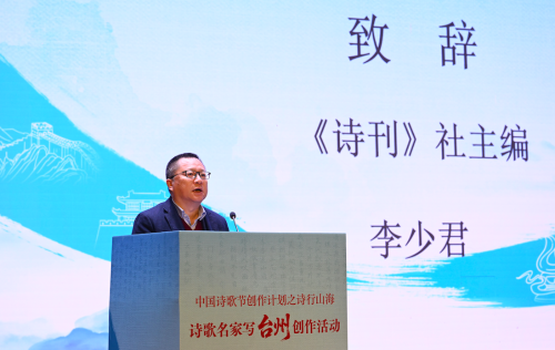 李少君在致辭中表示,臺(tái)州,是一座被詩(shī)歌浸潤(rùn)的城市,這里是浙東唐詩(shī)之路的目的地,是詩(shī)人們心向往之的文化圣地。今天,我們依然能在這片土地上感受到那份跨越千年的詩(shī)心與詩(shī)意。期待各位詩(shī)人為臺(tái)州的山海賦予新的情感的溫度,為臺(tái)州的故事插上詩(shī)意的飛翔的翅膀,讓更多人通過(guò)詩(shī)歌這扇窗,看見(jiàn)一個(gè)立體生動(dòng)、充滿(mǎn)魅力的新時(shí)代臺(tái)州。